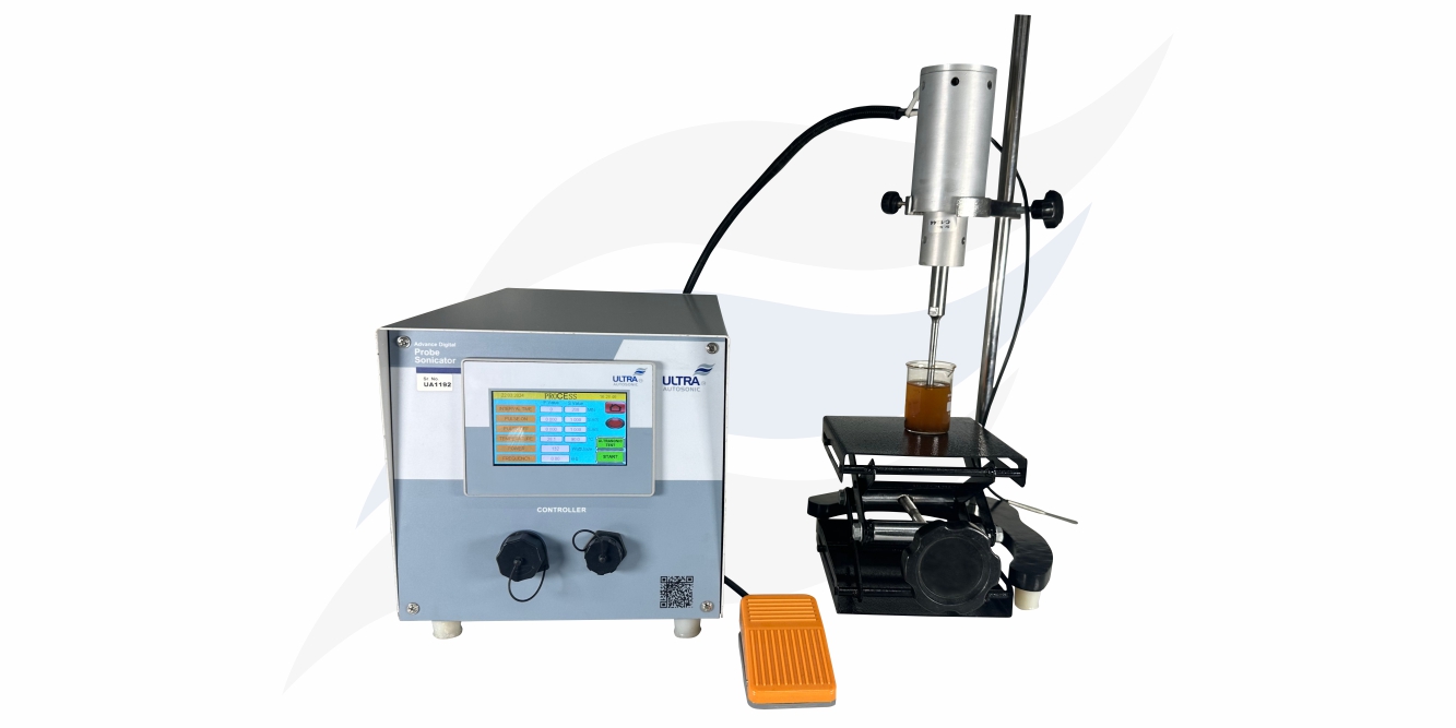A Sonicator system comprises of 3 main components: generator, convertor and horn (probe). The sonication process uses ultrasonic sound waves. During the process, there is a production of thousands of microscopic vacuum bubbles in the solution due to applied pressure. This results in the disruption of the molecular interactions between the molecules of water. As there is a reduction in the molecular interactions, the particles start to separate and allow the mixing process to take place. There is a release of energy from the sound waves that result in friction in the solution.